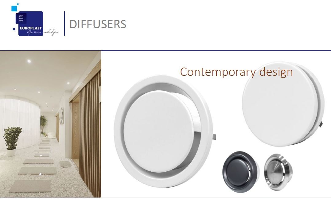 We invite you to familiarize yourself with the ventilation diffusers offered by the company Eiroplasts, which are made of metal, plastic, and wood. We offer different series of diffusers, both classic and modern design, so that everyone can find what they need.