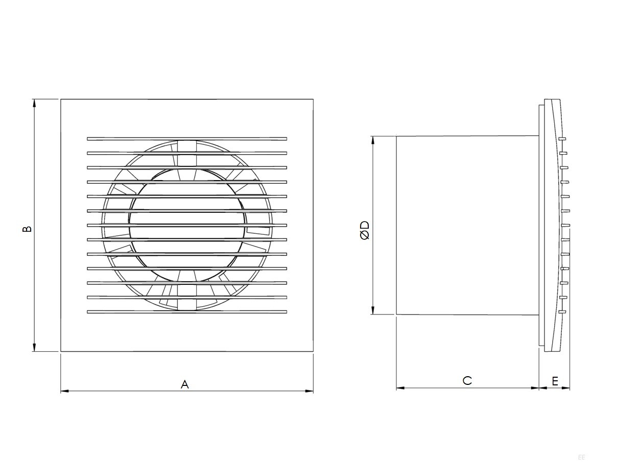 The domestic exhaust fans of the EE series produced by EUROPLAST are efficient, easy to montage and to use. The fan housing and front grille are made of high-quality and durable ABS plastic that is resistant to temperature and UV rays.