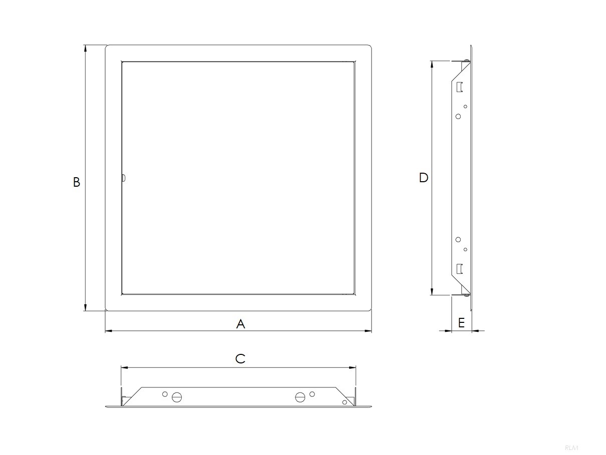 EUROPLAST access panels RLM are made from steel or other metal. Depending on the model, they are coated with a polymer coating and are resistant to high humidity and mechanical damage. Designed for interior use. Inspections hatches can be mounted on the ceiling or on the walls and fixed with glue or screws. Inspections hatches are available in a wide range of sizes.