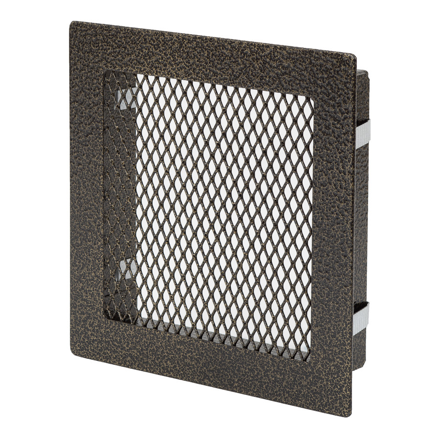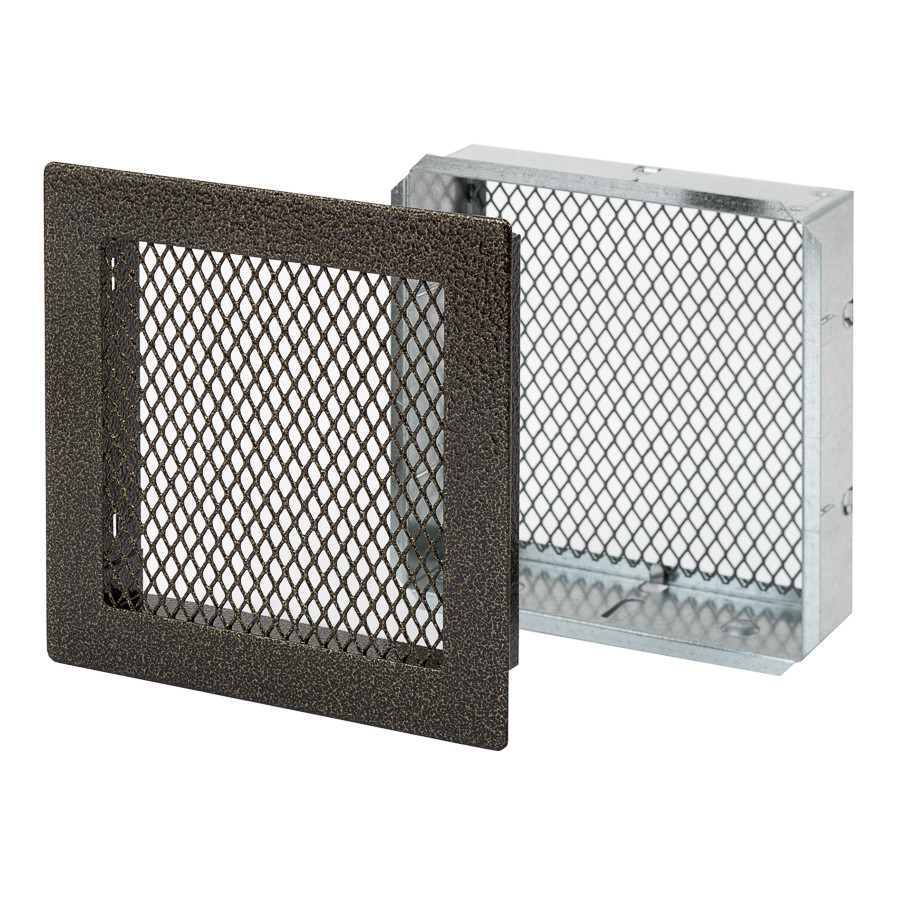grille fireplace, 150x150mm, with a frame and a mesh, antique gold