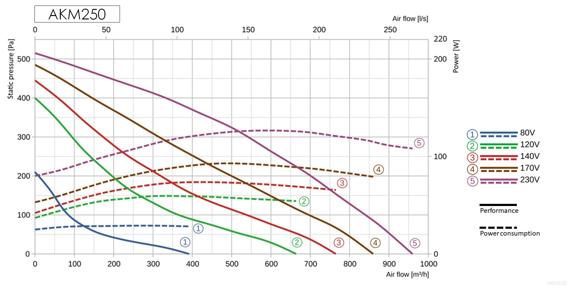 | AKM250 | 220-240~ 50 | 140 | 0,60 | 4 | 967 | 2659 | 4.4 | -40/+40 | IP44 | IP55 |