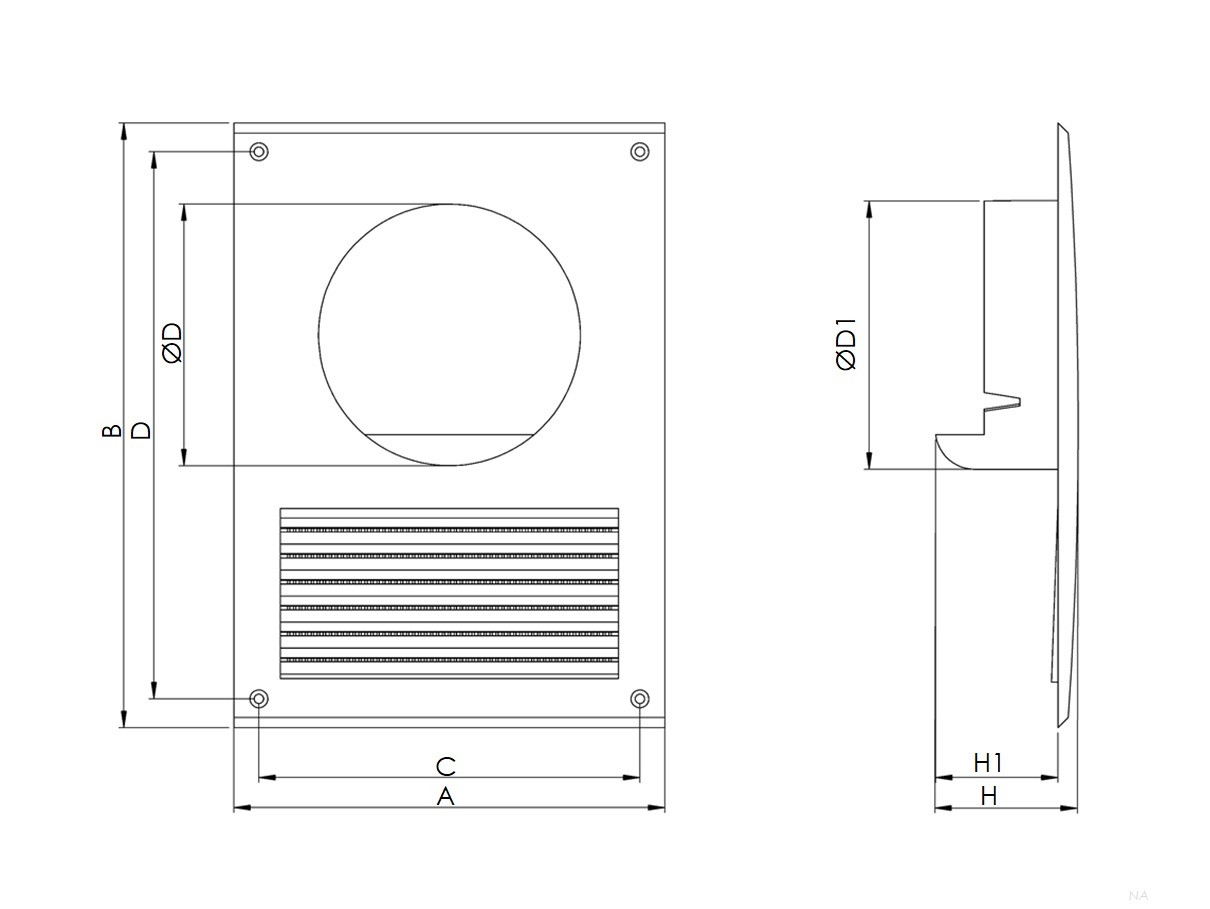 The NA adapter-grille is designed to connect a cooker hood to the ventilation opening. The built-in deflector directs the air flow upwards, preventing it from returning indoors. The grille at the bottom allows to work for natural ventilation.