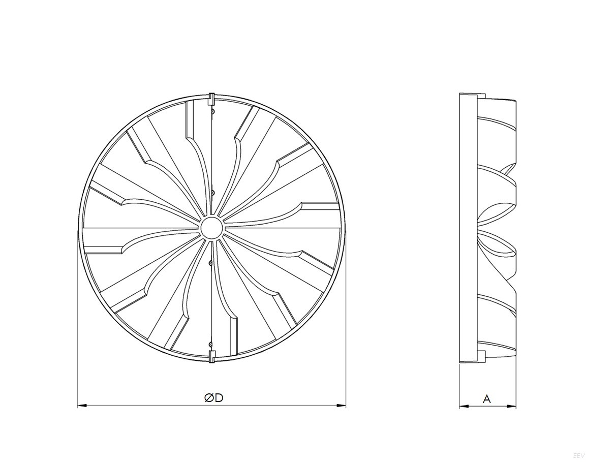 The EEV valve is designed to prevent backflow of air. The valve does not affect the passive ventilation in the room. Intended for use with fans with a diameter of 100, 125 and 150 mm.