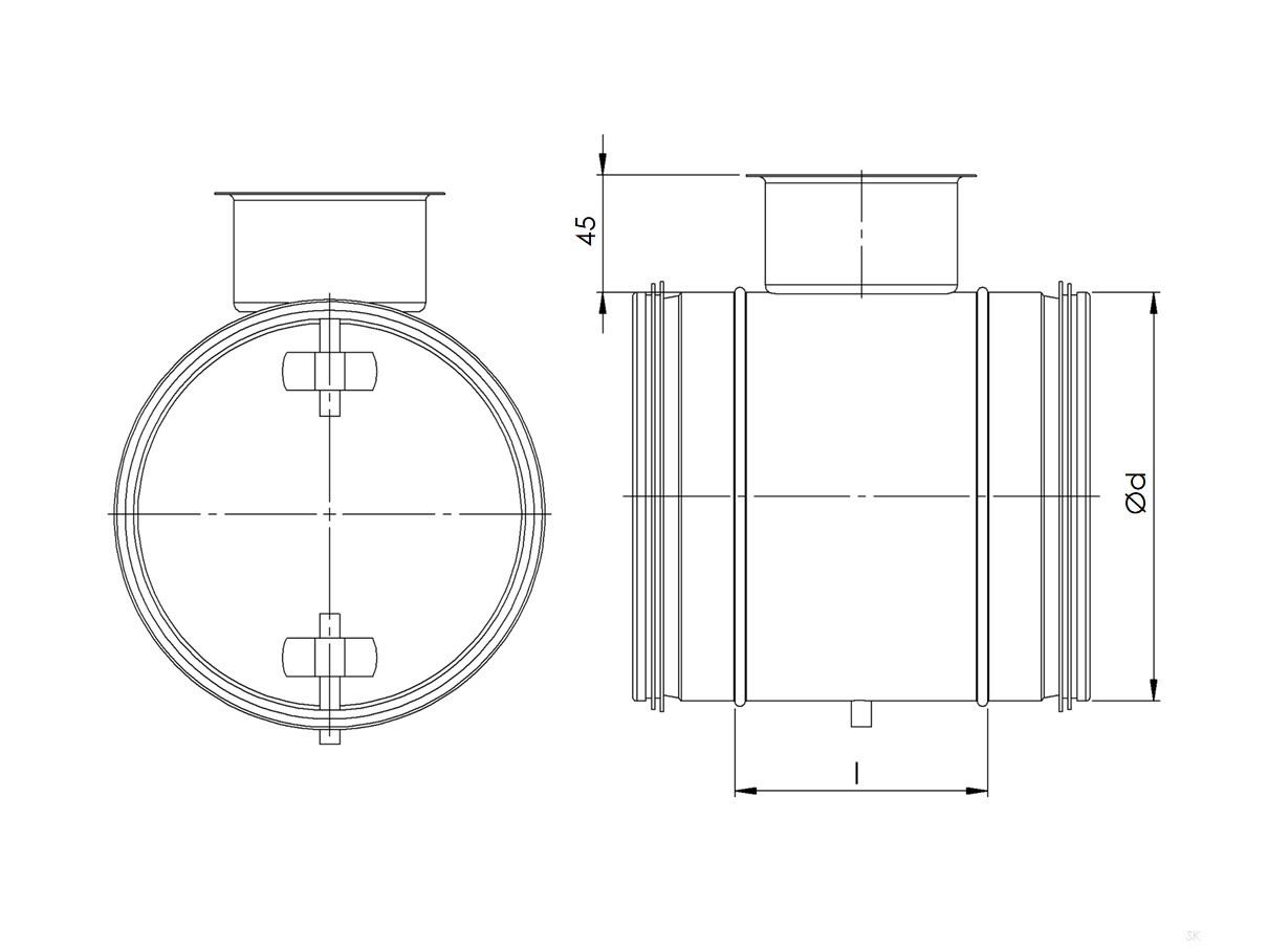 Damper SK for regulating and shut-off, is a good choice when the ductwork closure does not have to be fully airtight. They are easily installed in a circular air duct system. Can be mounted in any position. The circular blade is manually adjustable 0–90° with metal handle. Polyamide bushings
