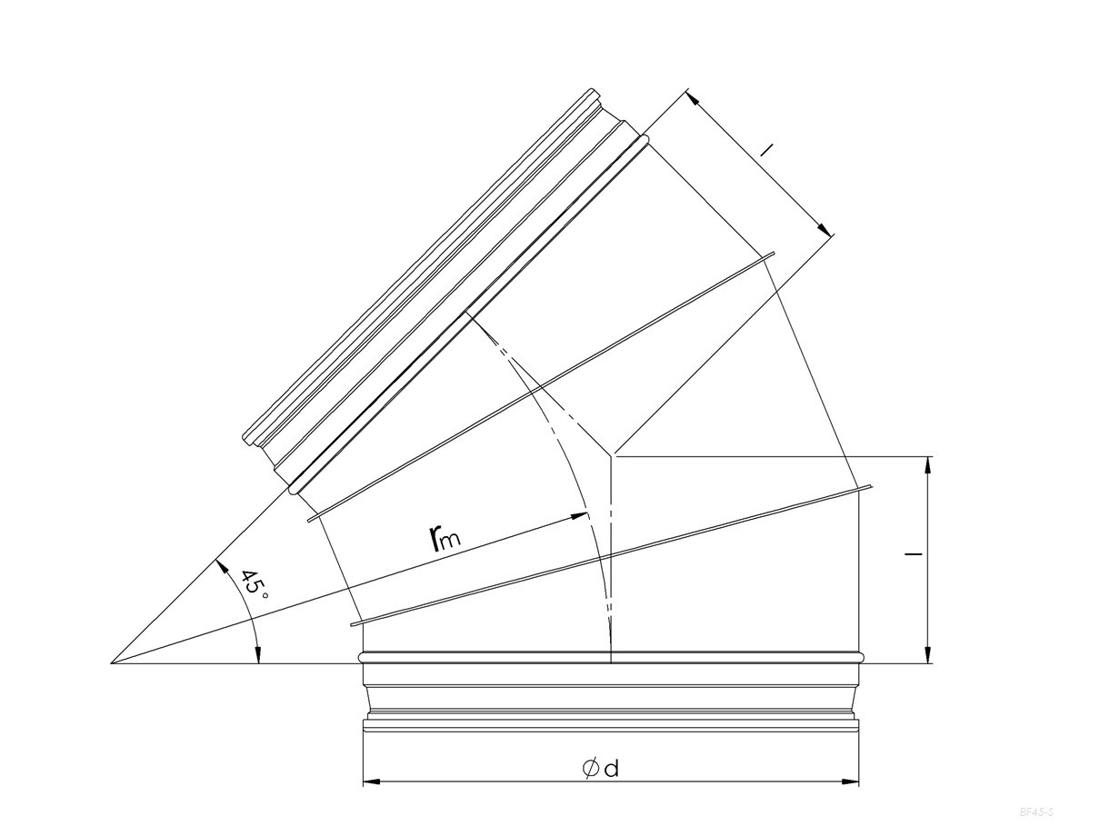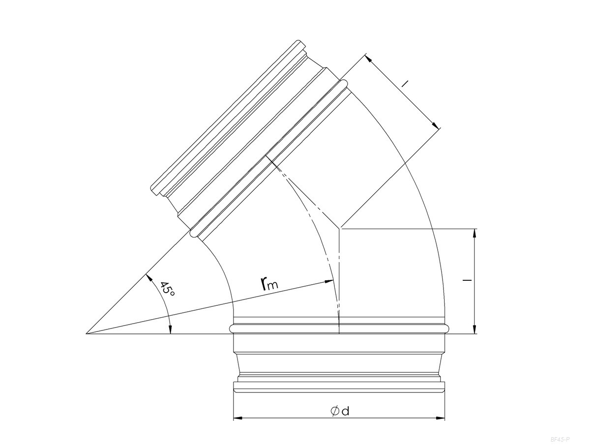 codo metálico, 45°- Ø125mm, sin gomas, presionado