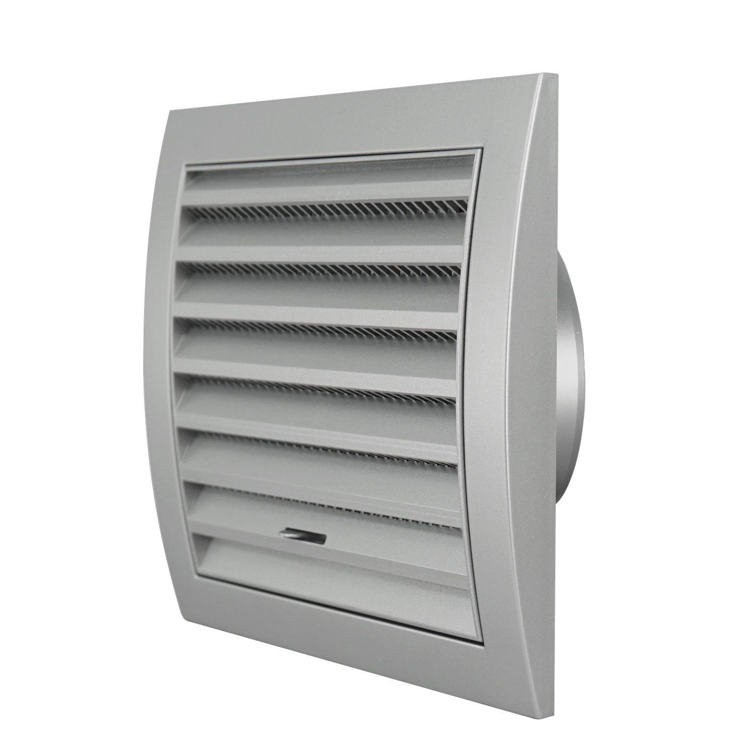 grotelės plastikinės, 148x153mm, Ø100mm, reguliuojamos, sidabrinės