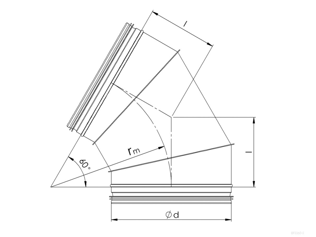 kolano metalowe, 60°- Ø150mm z uszczelniaczem